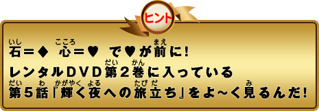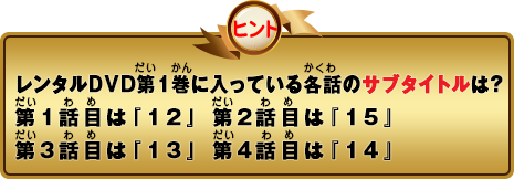 ※レンタルDVD 第1巻、第2巻の特典映像には、別のヒントも収録されているので、お見逃しなく!!